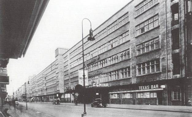 Berlin-Schöneberg: Die glatte, 150 m lange, braunrote Travertin-Fassade mit Femina und Texas Bar 1932