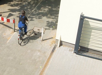 sie weiss nicht warum. Sie tritt aus dem Eingang