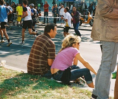 kommt eng umschlungen ein Liebespaar die Pariser Strasse entlang,