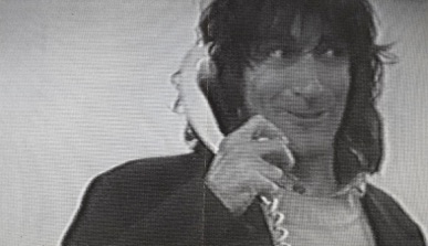 in die Telephon-Realität zurückgeholt, nimmt den Hörer vom Ohr