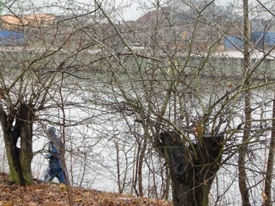 ohne Blätter, es ist alles so durchsichtig geworden. Es hat Pfützen